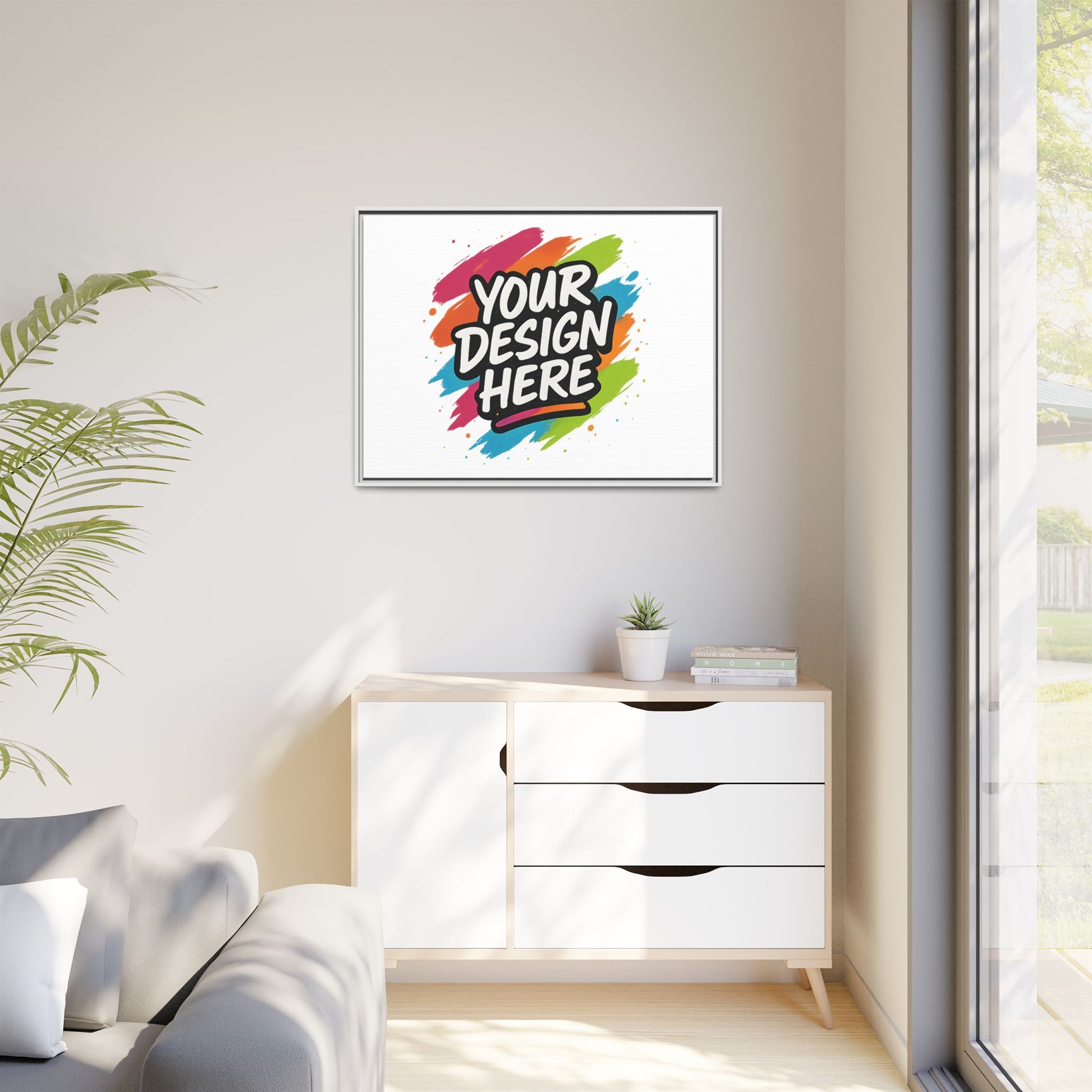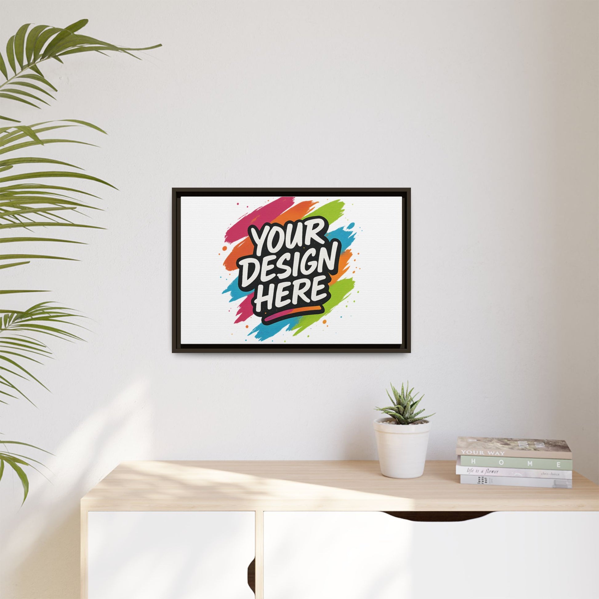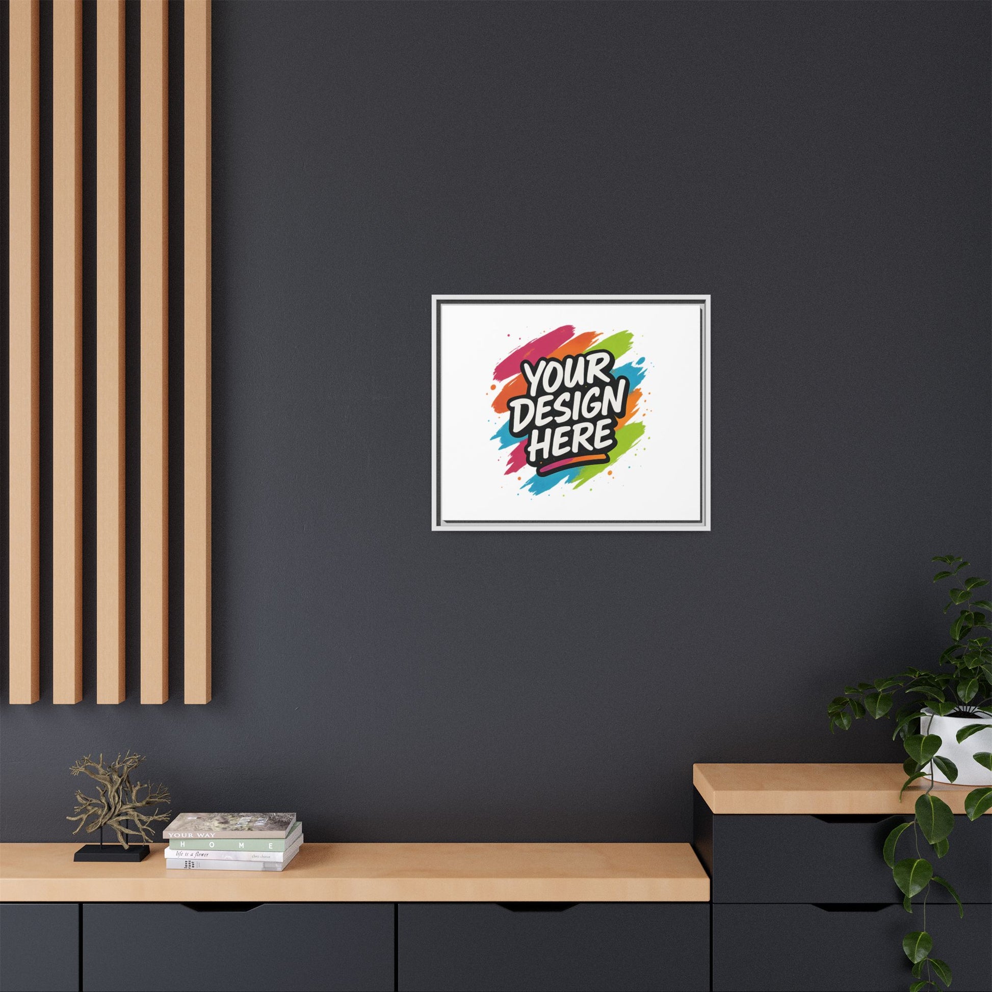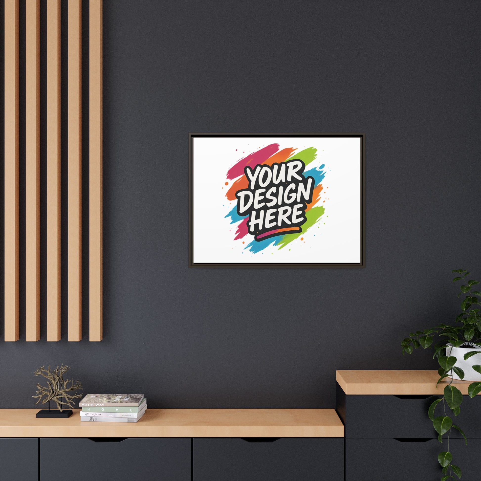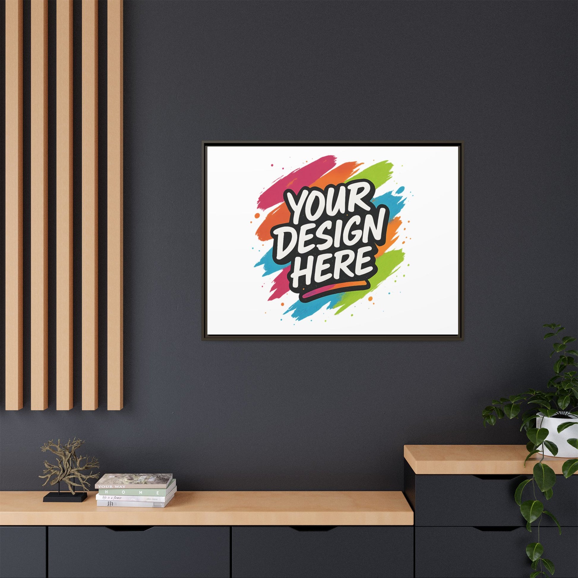 Bring your vision to the wall. The Custom Framed Canvas turns your art, photography, or logo into a professional, gallery-worthy piece — designed to last a lifetime. Printed with rich, fade-resistant color on a smooth cotton-poly canvas and stretched over a handcrafted pinewood frame, each piece arrives ready to hang and made to impress. Choose your frame color and size, and let your creativity take center stage.