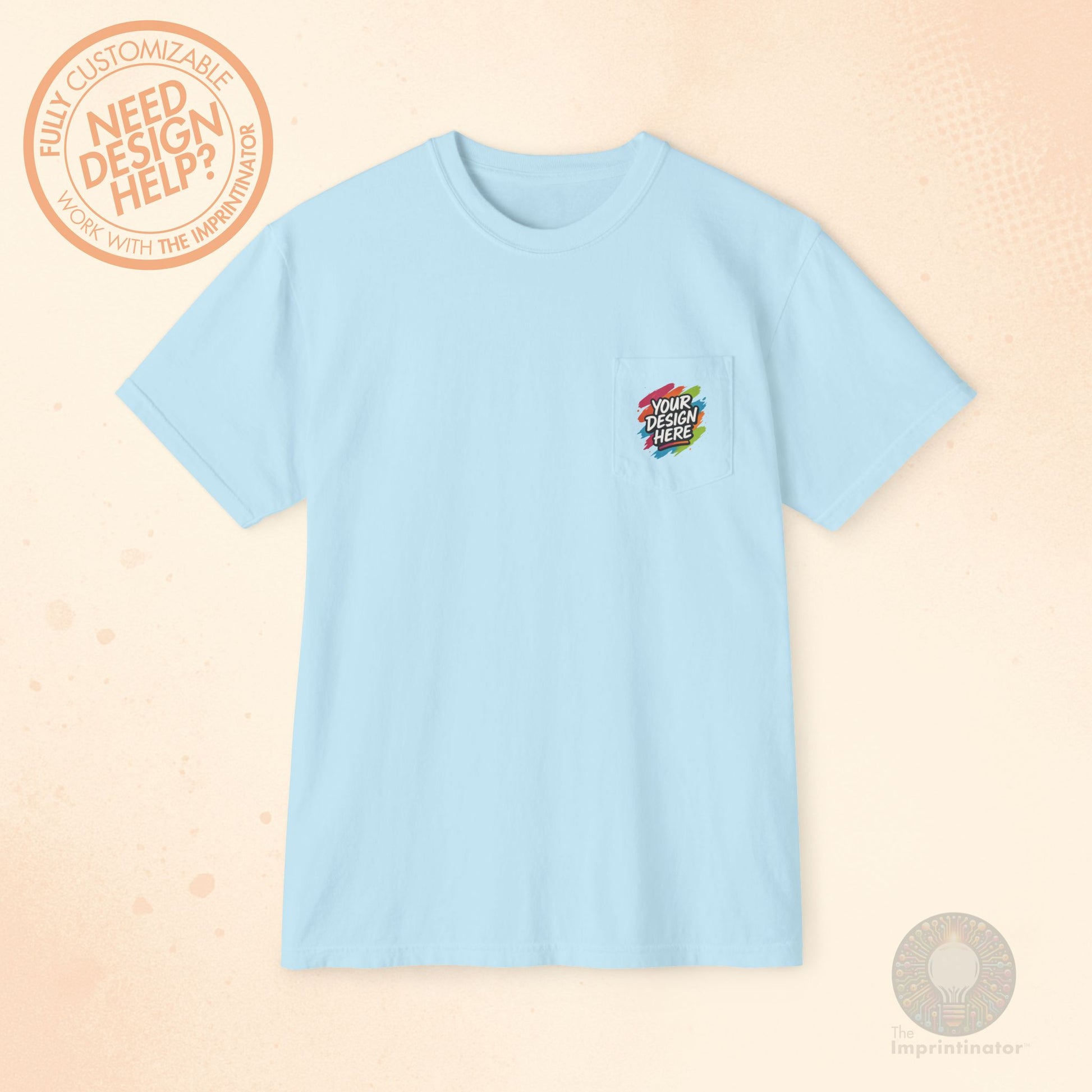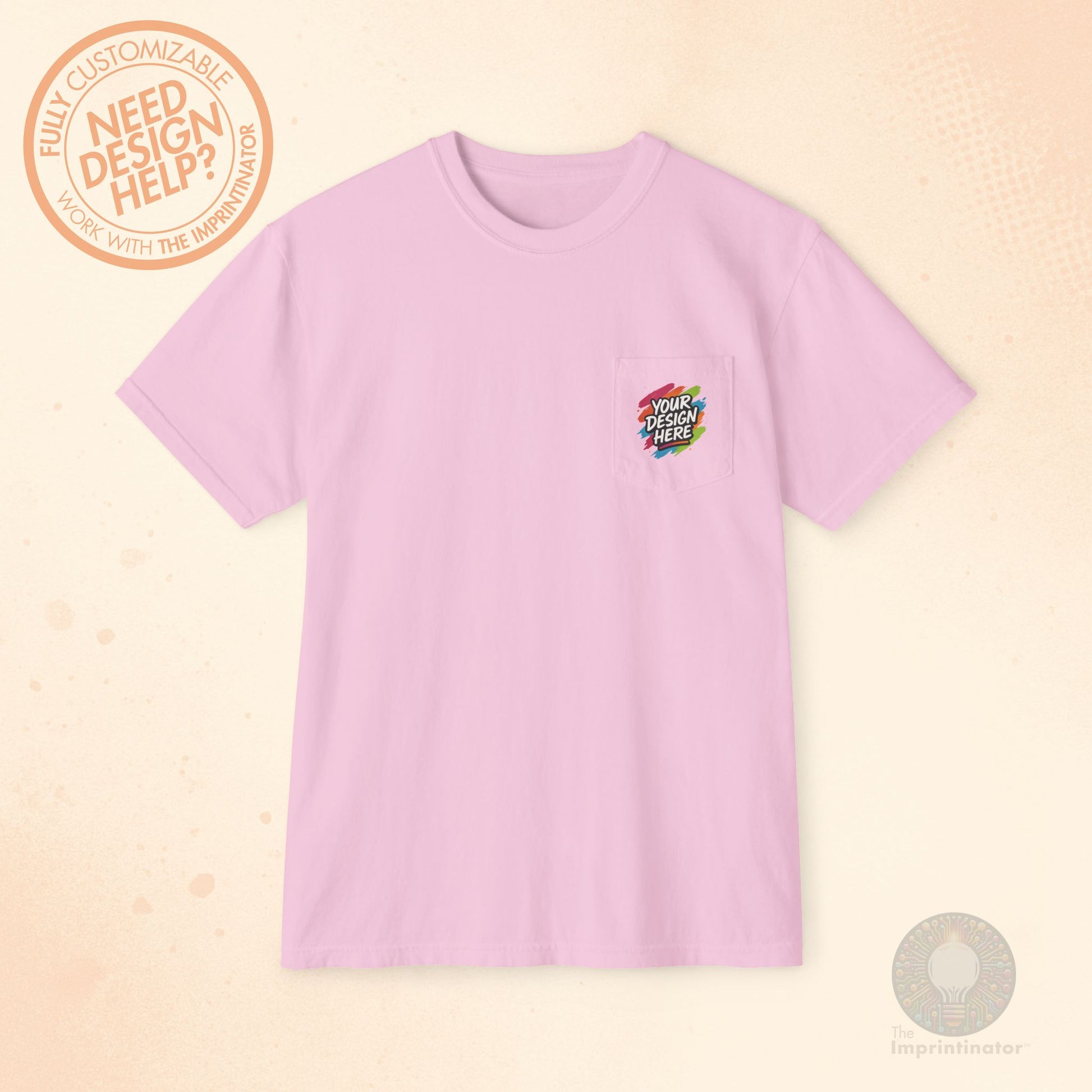 Everyday comfort meets custom creativity. The Custom Pocket T-Shirt from Comfort Colors® brings that lived-in softness and relaxed fit you’ll want to wear again and again. Made from heavyweight, ring-spun cotton and garment-dyed for rich color, it’s the perfect blank canvas for your logo, artwork, or statement design. Personalize the pocket or back and create a timeless piece that feels like it’s been yours forever.